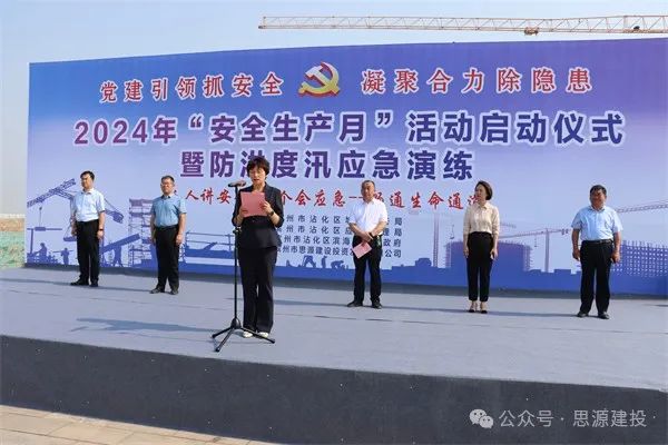6月6日,由濱州市思源建設投資發展有限公司承辦的2024年“安全生產月”啟動儀式暨防洪度汛應急演練活動在沾化區潮河擋潮閘建設項目現場舉行,沾化區濱海鎮人民政府、沾化區應急管理局、沾化區城鄉水務局等單位參加,區人民政府副區長沈洪梅參加啟動儀式并講話。