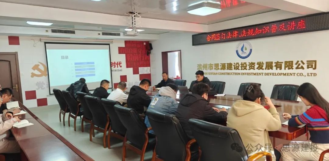 11 月 5 日上午,濱州市思源建設投資發展有限公司組織開展了“合同簽訂法律、法規知識普及”講座活動,公司各部室相關人員參加。